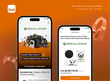 Desenvolvimento da experiência do Xbox All Access dentro do app Itaú, conectando o ecossistema bancário ao universo gamer.
